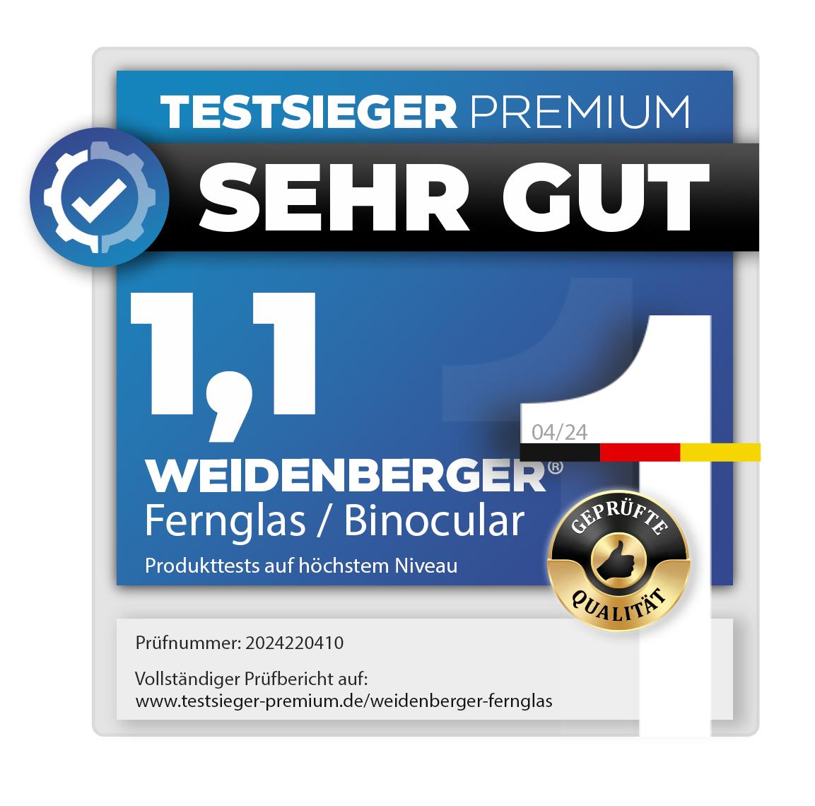 Das Ergebnis: Weidenberger Ferngläser wurden mit der herausragenden Note 1,1 ausgezeichnet. Ein Beweis für höchste Qualität und exzellentes Design.