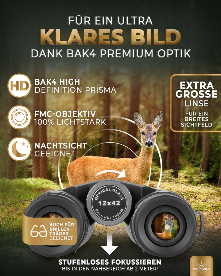 - ✅ GELD ZURÜCK VERSPRECHEN: Wenn du mit deinem Weidenberger Fernglas nicht 100 % zufrieden bist, erhältst du den vollen Betrag sofort zurück. Ohne Wenn und Aber. Sichere dir dein Premium-Fernglas JETZT.